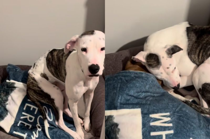 Eddie continues, “He’s tired. Leave him alone,” as the camera captures the senior dog snoozing undisturbed. However, instead of retreating to her own space, CiCi insists on snuggling up next to her big brother. “Our rescue pup will only sleep next to our senior dog. It doesn’t matter how small the space is…” an on-screen text from Eddie reads. “I think being next to him makes her feel extra safe.” Eventually, Eddie gives in, allowing CiCi to stay and even covering both dogs with the blanket to keep them cozy.