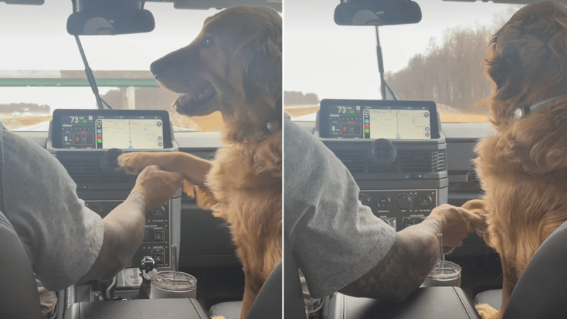 A sweet Instagram video from user @restored_relics_nikki features a Golden Retriever named Cilly riding shotgun with his dad. The canine demands that his dad hold his paw throughout the trip. The video captures Cilly in the passenger seat, sitting patiently. Suddenly, the dog calmly lifts one of his paws and rests it on the center console, reaching toward his dad, and it is one of the most adorable things you will see today.